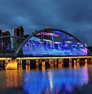 改则LED灯具:因其高效节能、长寿命及色彩丰富等特点,被广泛应用于现代河道亮化项目中。
